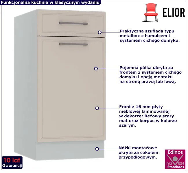 • Modny kolor: front: Beżowy szary mat, korpus: szary.
