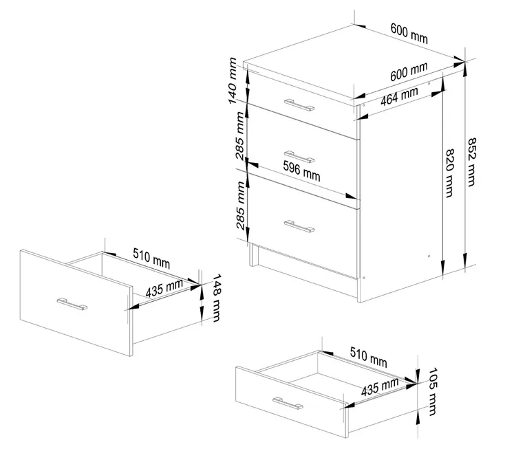 • Optymalna przestrzeń do przechowywania: trzy pojemne szuflady zapewniają miejsce na wszelkie kuchenne akcesoria, od sztućców po naczynia, utrzymując Twoją kuchnię w idealnym porządku.
