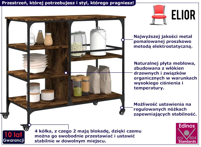 Dotyczy: Wózek kuchenny z półkami brązowy dąb - Eljoh