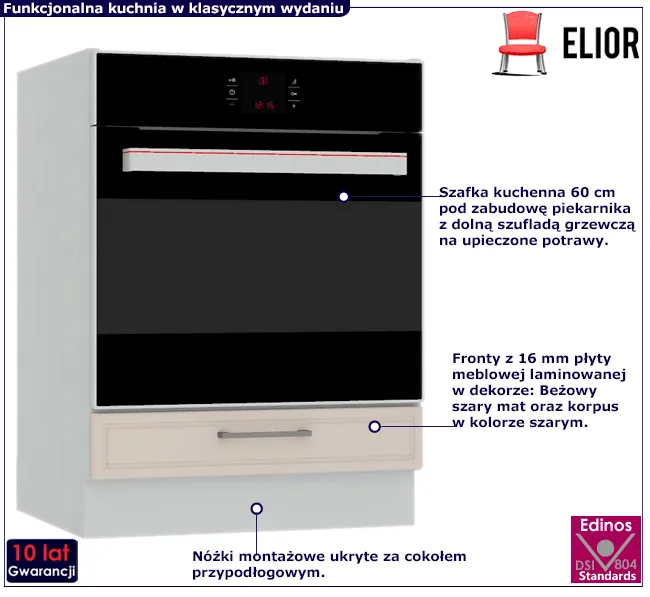 • Modny kolor: front: Beżowy szary mat, korpus: szary.