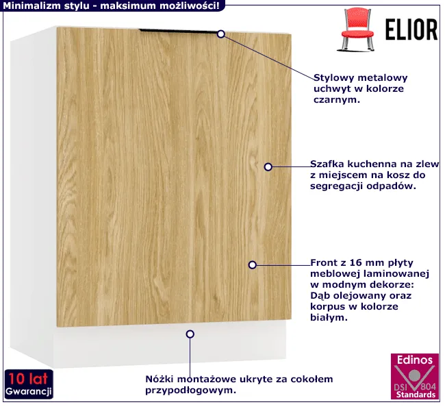 - Modny kolor: korpus: Biały, front: Dąb olejowany.
