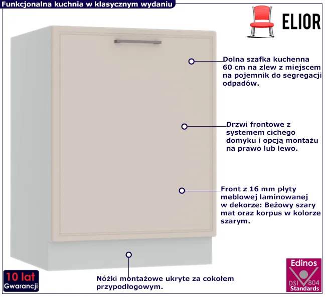 • Modny kolor: front: Beżowy szary mat, korpus: szary.