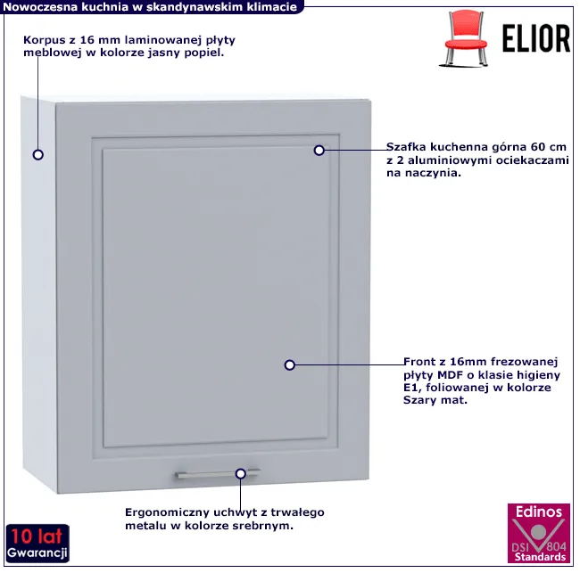 - Modny kolor: korpus: Jasny popiel, front: Szary mat.