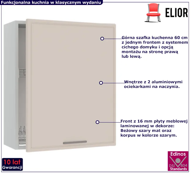 • Modny kolor: front: Beżowy szary mat, korpus: szary.