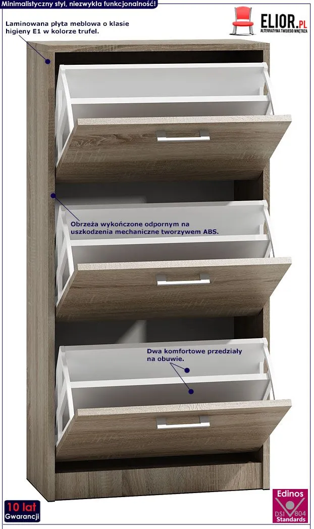 Dotyczy: Biała komoda na buty z 3 szafkami - Waxa