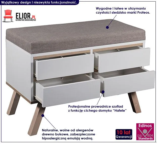 W ofercie posiadamy także nieco mniejszy model szafki Bonito widoczny poniżej. Możesz używać szafek z funkcją siedziska lub jako standardowe meble z szufladami.