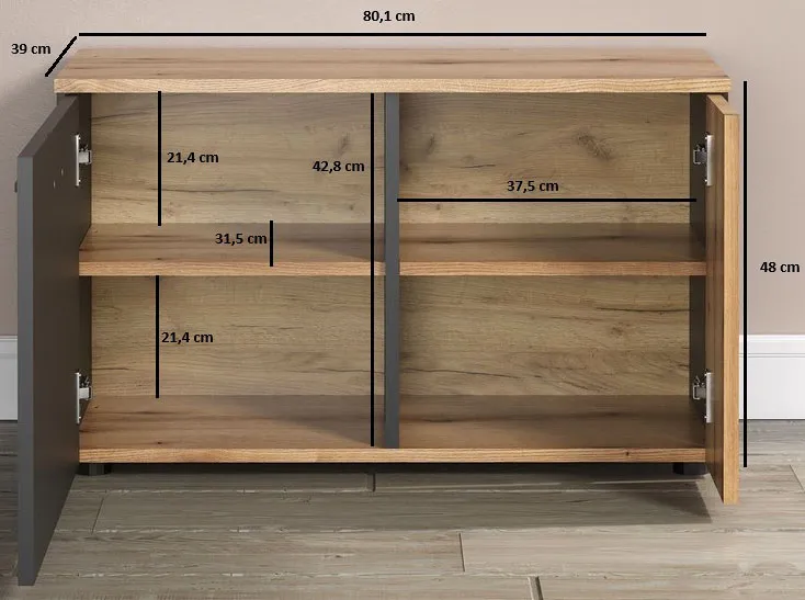 Szafka na buty z lamelami grafit + dąb evok - Assoni 10X