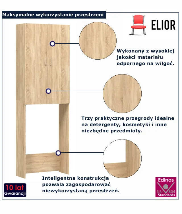 Koniec z bałaganem w łazience! Szafka nad pralkę Harol marki Edinos Premium pozwoli Ci stworzyć uporządkowaną i funkcjonalną przestrzeń, w której wszystko ma swoje miejsce. Zdecyduj się już teraz w cenie 428 zł i ciesz się praktycznym rozwiązaniem w swoim domu!