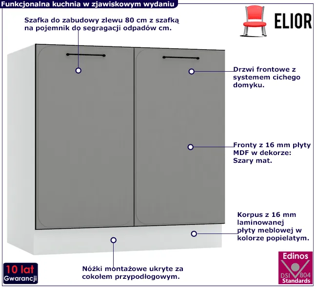 Szafka na zlewozmywak 80 cm szary mat - Frev 17X