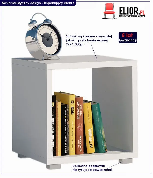Absurdalnie supernowoczesna, designerska i komfortowa... dlaczego? Proponowana szafka nocna Cesaro 9X wyróżnia się nie tylko swoją praktyczną formą i ekstrawersyjnym kształtem, ale także zastosowaniem materiałów najlepszej jakości. To dlatego cieszy się powodzeniem wśród osób lubiących nowatorskie rozwiązania. Użyta do produkcji mebla naturalna płyta laminowana o objętości aż 93 dm3, została uszlachetniona i pokryta cienkimi filmami melaminowymi. Posiada także specjalne włókna ułożone różnokierunkowo, co zapewnia nadanie jej cech jakościowych oraz wytrzymałościowych. Uważaj na podobne produkty innych producentów, wykonane z importowanej, chińskiej i papierowej płyty MDF, które łamią się przy lekkim stuknięciu w korpus. Tylko jakość mebli marki Elior potwierdzona jest aż 5-cio letnią gwarancją! Odmień Swoje wnętrze już dziś i zaplanuj wymarzony "Kawałek Nieba"!