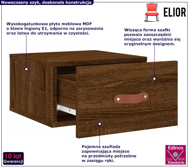 Dotyczy: Skandynawska wisząca szafka nocna dąb sonoma - Brexi