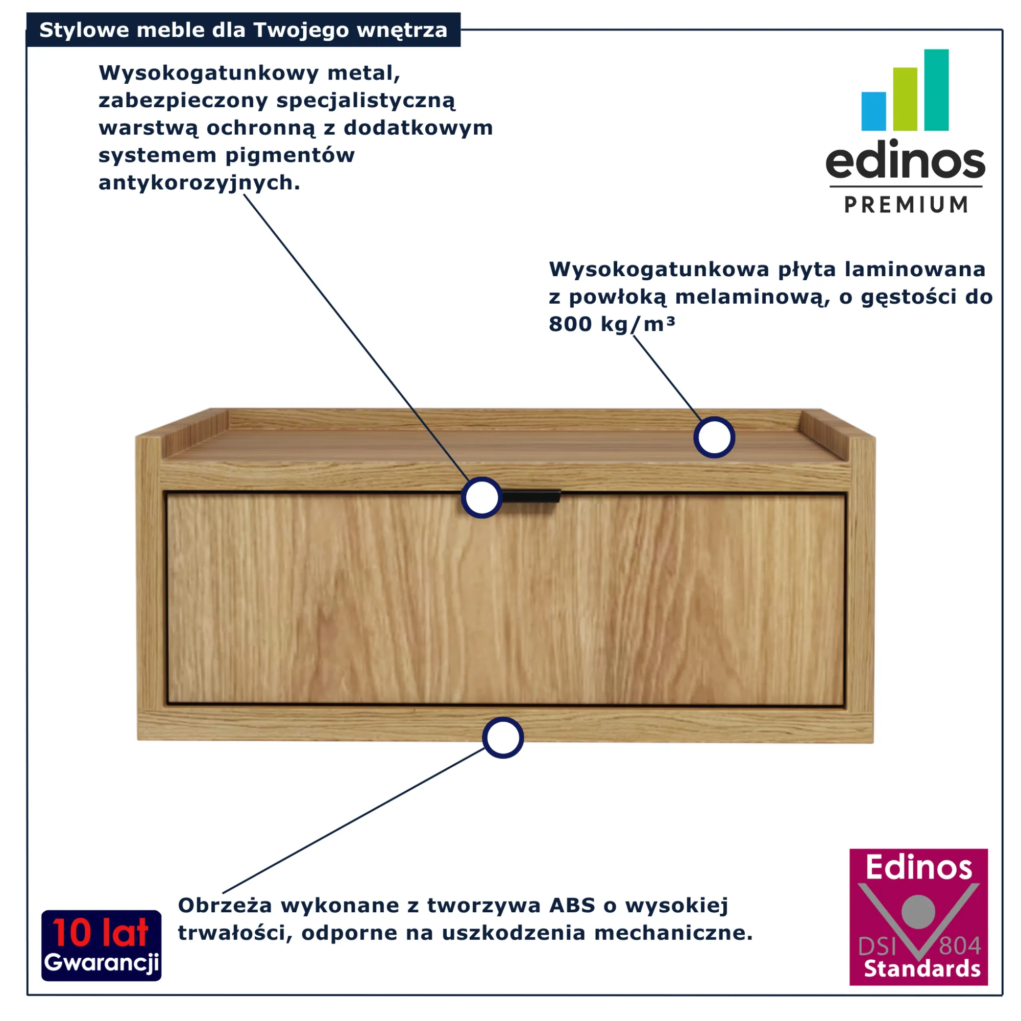 Dotyczy: Stolik nocny z szufladą wiszący orzech warmia - Herioz 8X