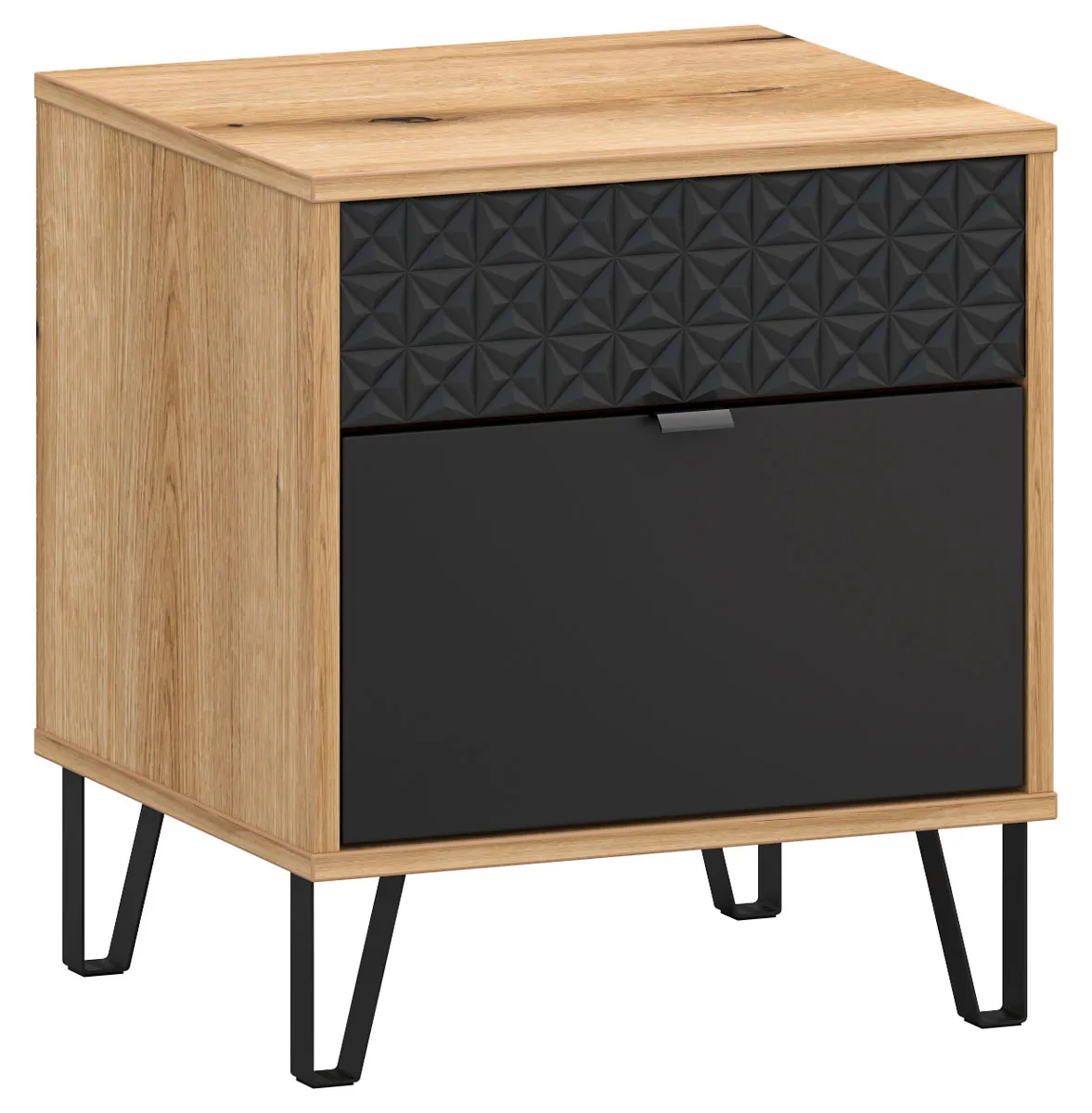 Szafka nocna z szufladą na nóżkach dąb evok + czarny - Eccio 10X