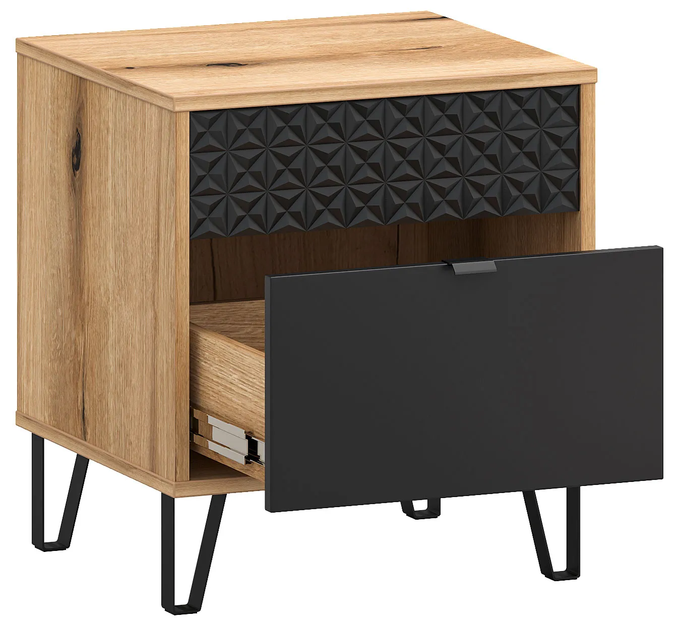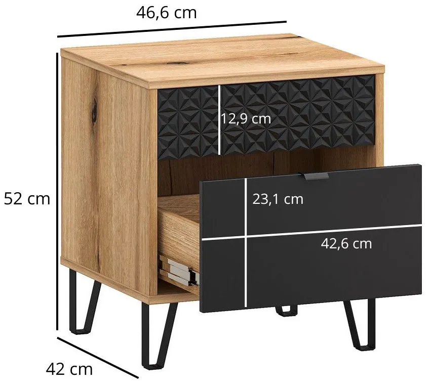 Szafka nocna z szufladą dąb evok + czarny Eccio 10X