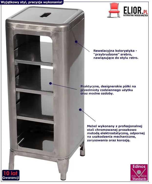 - Modna kolorystyka: industrialne, „przybrudzone” srebro. Kliknij w link i sprawdź także inne kontenerki w sklepie Edinos.pl. Stwórz swój praktyczny zestaw mebli.