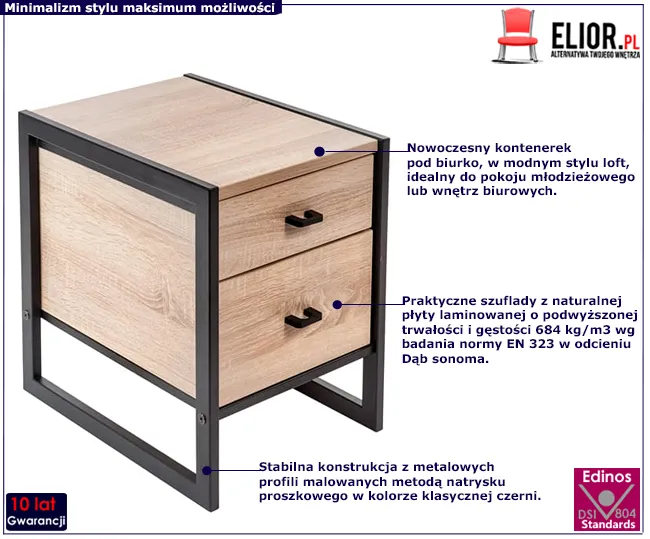 - Modny kolor: czarny + dąb sonoma. Szukasz innej szafki biurowej z szufladami? Kliknij w link i sprawdź także inne komody z szufladami w sklepie Edinos.pl. Stwórz swój praktyczny zestaw mebli.