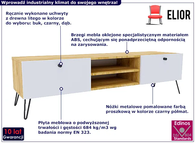 Dotyczy: Biała szafka RTV na metalowych nóżkach - Zorina 9X