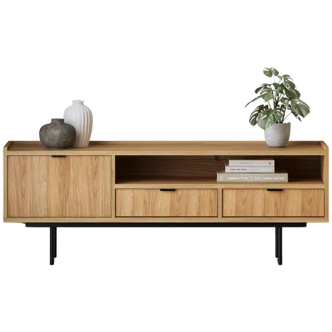 Szafka pod telewizor na nóżkach 150 cm hikora naturalna - Herioz 3X