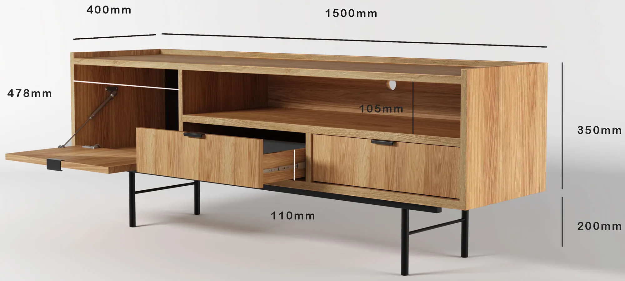 • praktyczna przestrzeń do przechowywania sprzętu RTV i dodatków
