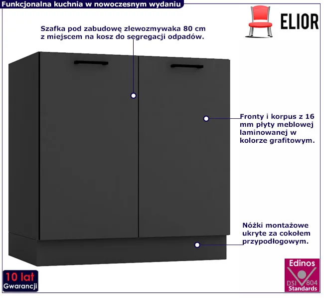Dotyczy: Szafka pod zlewozmywak 80 cm grafit + dąb artisan - Coleo 12X