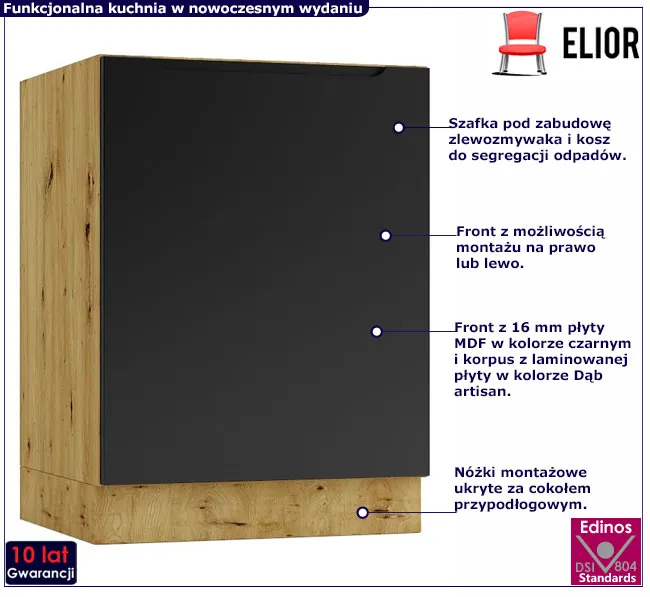 • Modny kolor: front: Czarnykorpus: Dąb artisan.