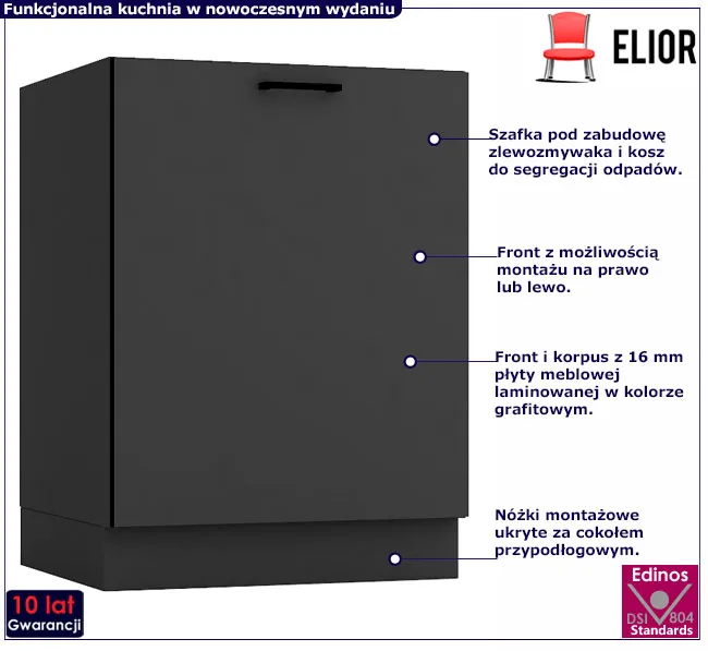 Dotyczy: Szafka do zabudowy zlewu 60 cm grafit + dąb artisan - Coleo 10X