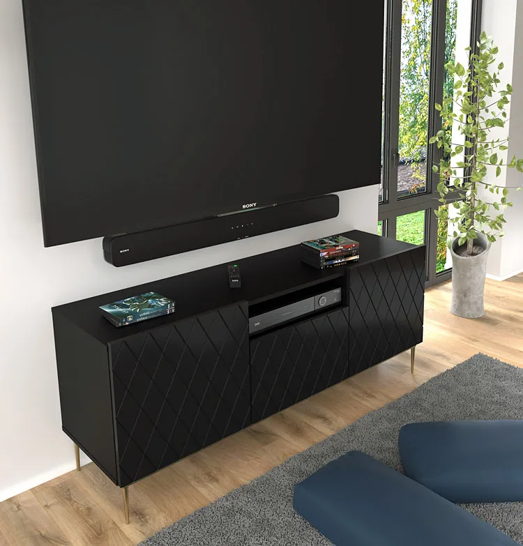Dotyczy: Szafka rtv czarny mat + złota rama - Nevia 3X
