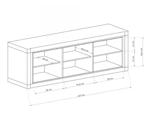 - Wymiary całkowite: wysokość: 53 cm, szerokość: 137 cm, głębokość: 43,5 cm.