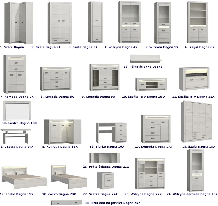 W naszej ofercie posiadamy meble z kolekcji Dagna w 3 wersjach kolorystycznych. Kliknij link i sprawdź która z nich pasuje do Twojego wnętrza najlepiej.