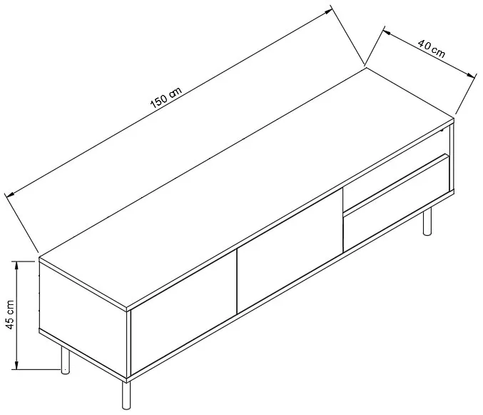 • szerokość: 150 cm, głębokość: 40 cm, wysokość: 45 cm