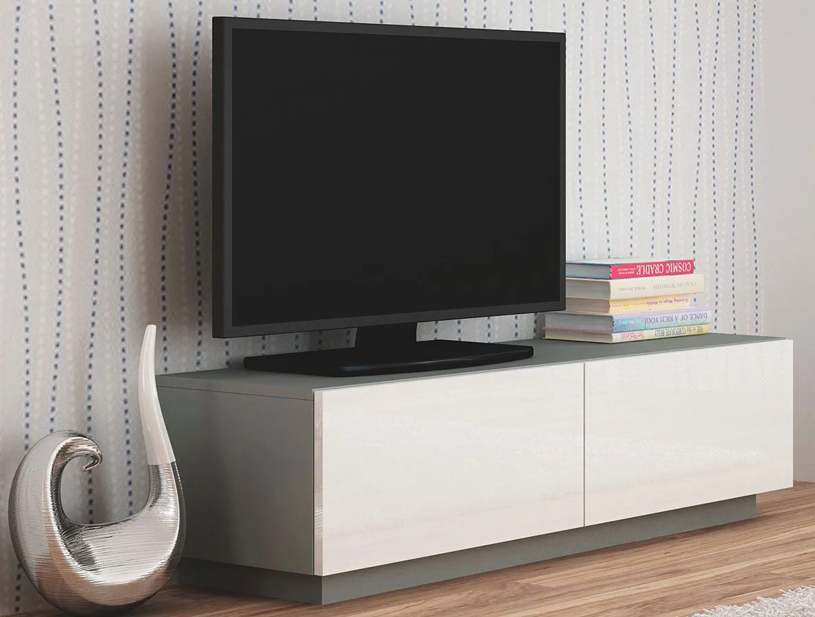 Lakierowana stojąca szafka pod telewizor biało-szara Vitoria 6X