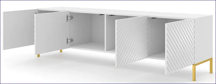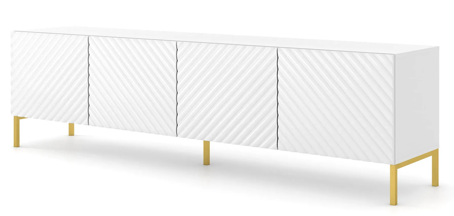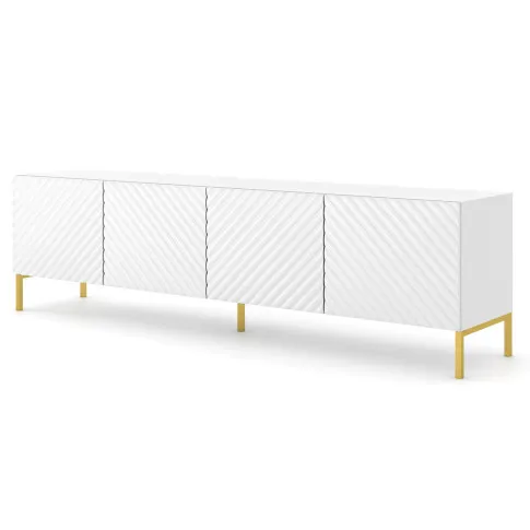 Szafka rtv w stylu glamour biały połysk + złote nóżki - Resa 7X
