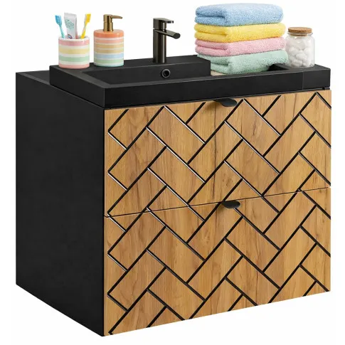 Czarna szafka umywalkowa nowoczesna 60 z frontem dąb craft złoty Aploni 4X