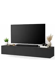 • wiszące szafki RTV – oprócz nowoczesnego stylu warto zwrócić uwagę na możliwość optycznego powiększenia przestrzeni z tego typu szafkami, dzięki czemu są one szczególnie polecane w mniejszych pomieszczeniach;