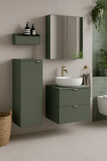 Dotyczy: Ryflowana szafka łazienkowa pod umywalkę biały + orzech - Enda 4X