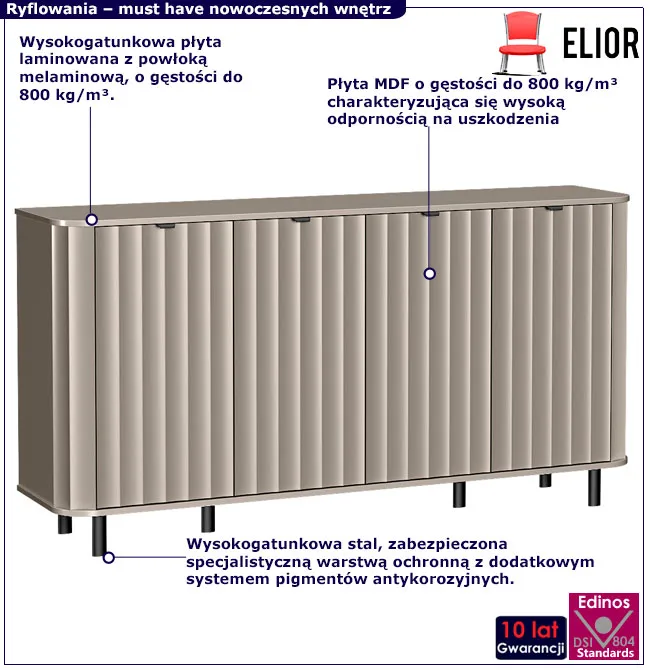 Dotyczy: Biała długa ryflowana komoda na nóżkach - Egesio 4X