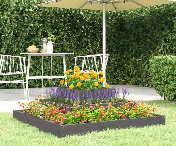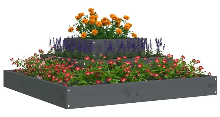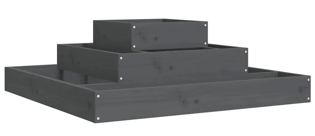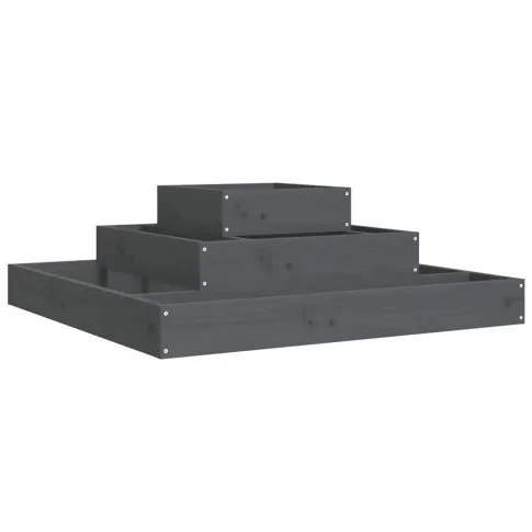 Szara drewniana trzypoziomowa donica ogrodowa - Edir