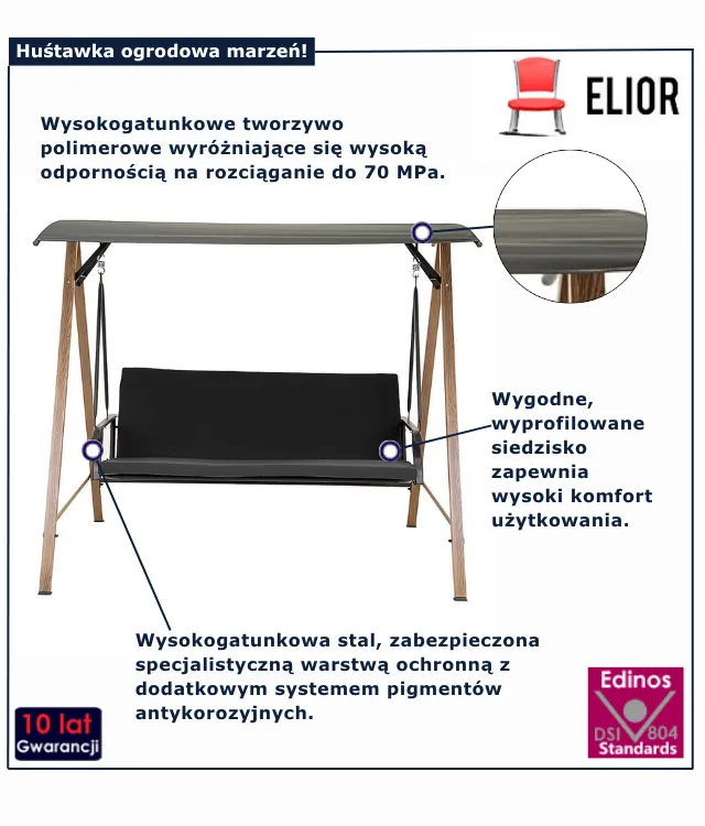 Nie pozwól, by codzienny pośpiech odebrał Ci radość z wypoczynku. Huśtawka ogrodowa 3-osobowa marki Edinos Premium to pomysł na stworzenie miejsca, które będzie należeć tylko do Ciebie – i tych, których lubisz zapraszać do wspólnego odpoczynku. Z myślą o Twojej wygodzie, bezpieczeństwie i estetyce, ten model łączy wszystko, co najważniejsze w ogrodowym relaksie. Dostępna już dziś w cenie 1178 zł – spraw sobie przyjemność i zrób pierwszy krok w stronę codziennego spokoju.