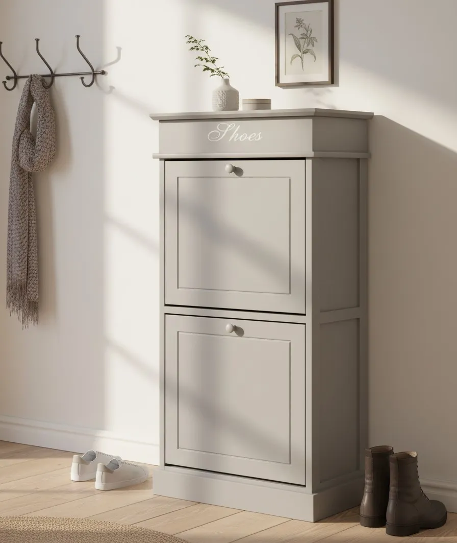 Dotyczy: Biała szafka na buty z uchylnymi przegrodami - Renarox