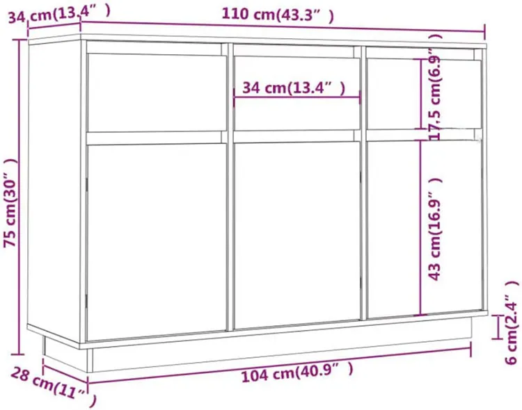 • Wymiary: wysokość mebla 75 cm, szerokość mebla 110 cm, głębokość mebla 34 cm.