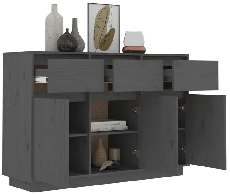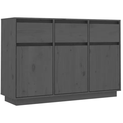 Szara komoda sosnowa z 3 szufladami i szafkami - Olviso