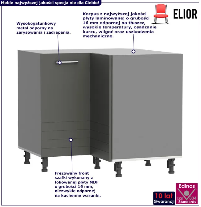 Atuty stojącej, narożnej szafki kuchennej Nitis 29X: