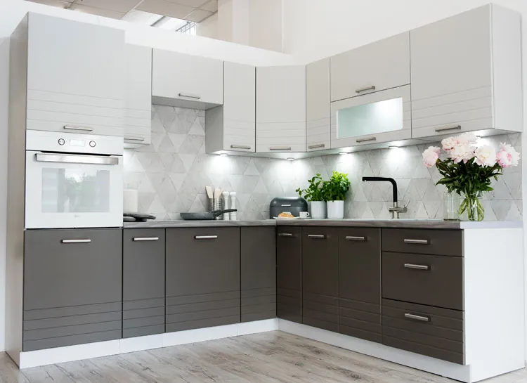 Kolekcja szafek kuchennych Arcadio to jakość na lata. Fronty ozdobiono minimalistycznym frezowaniem, które dodaje szafkom nowoczesnego charakteru. Wykonano je z najwyższej jakości foliowanej płyty MDF o grubości 16 mm, niezwykle odpornej na niekorzystne kuchenne warunki, jak wysoka temperatura czy tłuste opary. Matowe, jasnoszare górne fronty idealnie współgrają z dolnymi w kolorze MOCCA Grey SUPER MAT. Popielaty korpus każdej szafki wykonano z niezwykle trwałej płyty laminowanej 16 mm grubości marki Elior dedykowanej wnętrzom kuchennym. Meble posiadają mocne uchwyty stworzone z wysokogatunkowego metalu. W kolekcji znajdziesz między innymi witrynę przeszkoloną najwyższej jakości szkłem podwójnie hartowanym o eleganckim satynowym wykończeniu. Może ona stanowić miejsce na zastawę stołową, a przede wszystkim idealnie przełamuje monotonność kuchennej zabudowy. Masz także do wyboru praktyczne górne szafki otwierane do góry zawierające specjalne gazowe podnośniki. Wybierz tą nowoczesną kuchnię o stylowym, minimalistycznym wykończeniu i ciesz się jej ponadczasowym smakiem na co dzień.