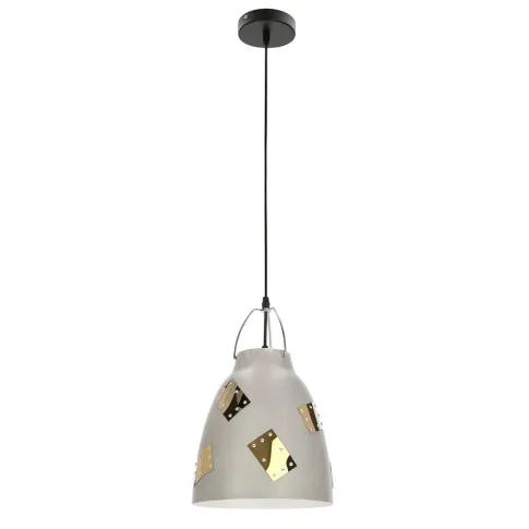 Szara lampa wisząca z chromowanymi elementami - D150-Apos