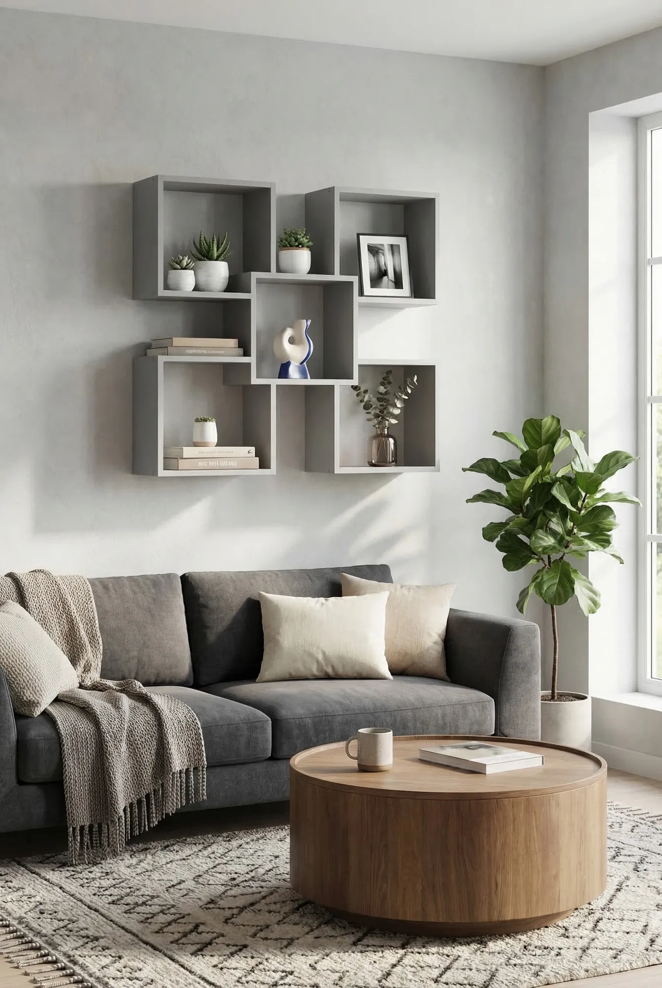 Aranżacja salonu z minimalistyczną półką ścienną Opifi