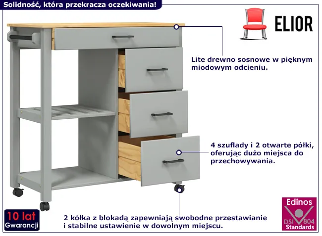 Dotyczy: Biały wózek kuchenny z szufladami - Vienne 4X