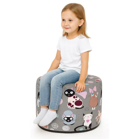 Szara okrągła pufa dziecięca w kotki - Audrey