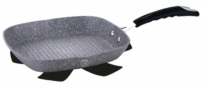 Szara patelnia grillowa z silikonowym uchwytem - Grolis 11X