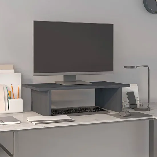 Szara podstawka pod monitor z drewna sosnowego - Zanari