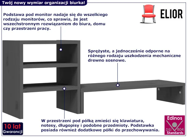 Dotyczy: Klasyczna półka na biurko z drewna sosnowego miodowy brąz - Taggo
